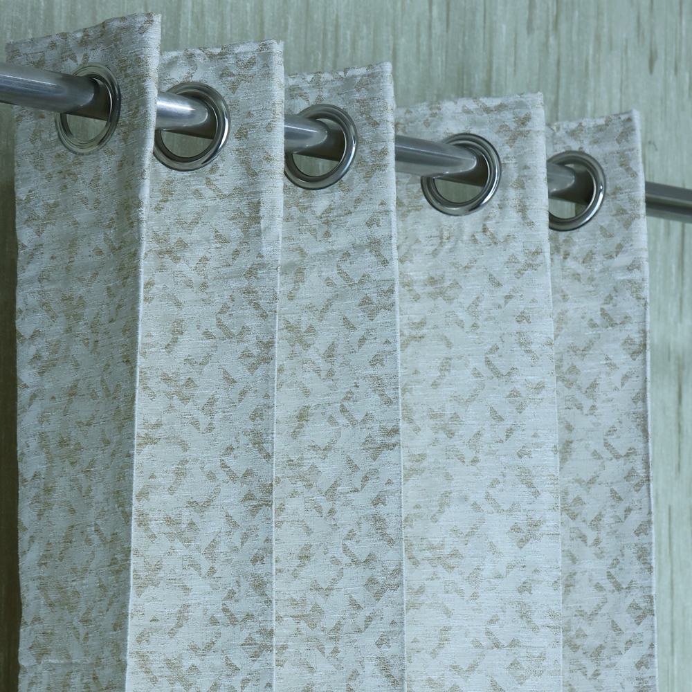 Add room brightening sand-coloured self-finished geometric patterns for interior makeover. These seamless readymade curtains for windows and doorways. The frank texture in an astonishing sand colour shade looks grand and can be matched with practically all upholstery tones. The exclusive Nature of the drape without coating will assist with shutting out the daylight. These cotton-polyester curtains are adequately thick to offer light control and also keep your room by 5-6 Degrees cooler than outside temperature. Mufasa readymade curtains make liveliness and inspiration in the room doubtlessly.