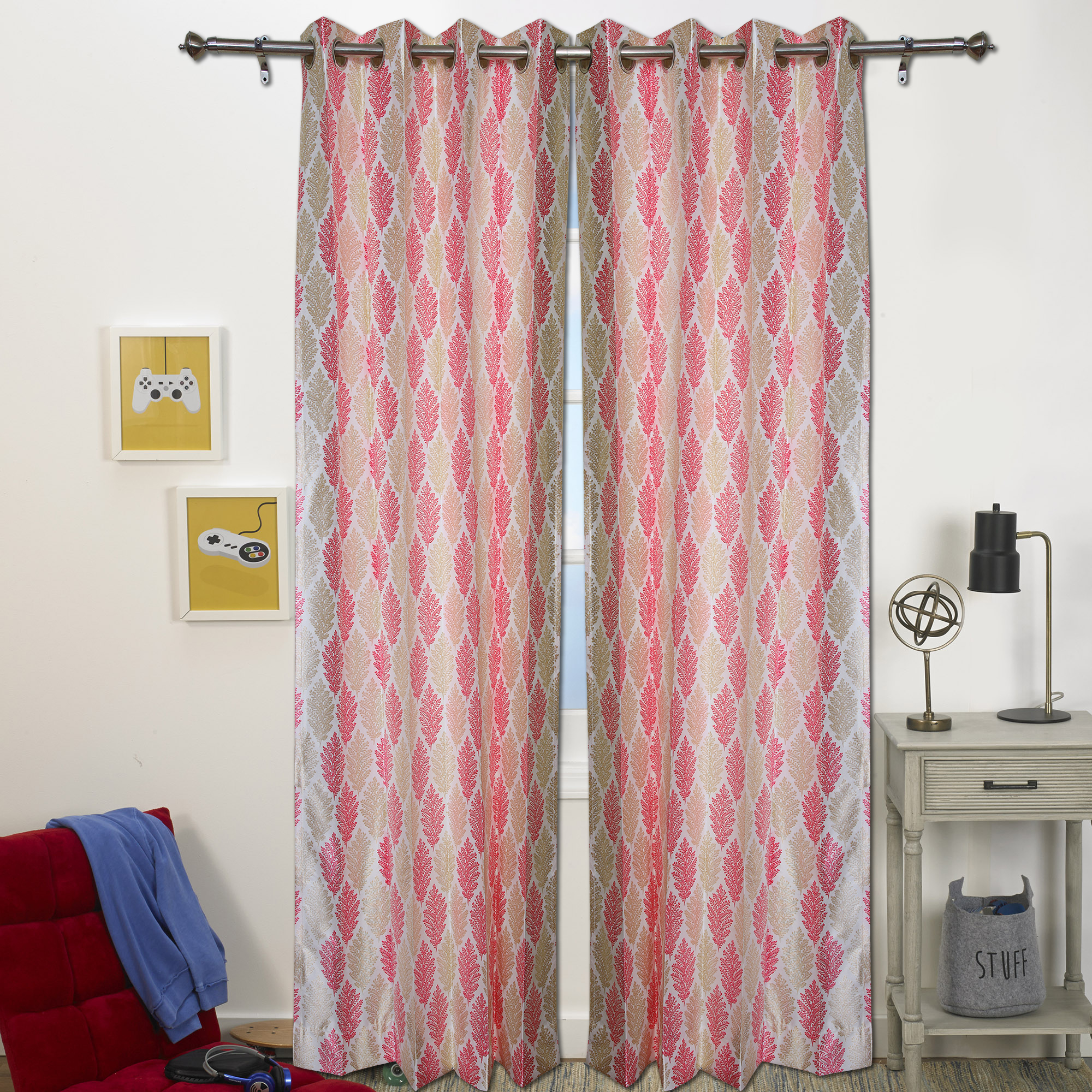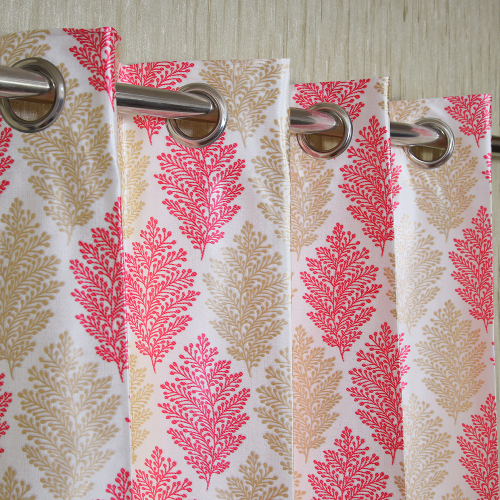 Add a botanical appeal to your living space with this comfortable leafy theme. It includes pretty blossoms in many tones on a new, cream or off-white foundation. Pair it with the duvet set and extras for the total, delightful look. These curtains can modify interiors as eyelets to hang on doorways or windows with added advantages of security and dust free space. Effective for light control, these curtains can go well with furnishings of any type and incredibly maintenance free. There is an assortment to observe choices across various styles.